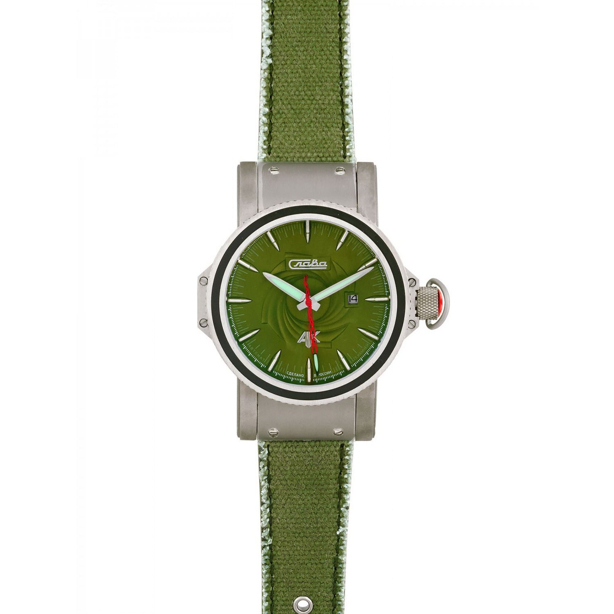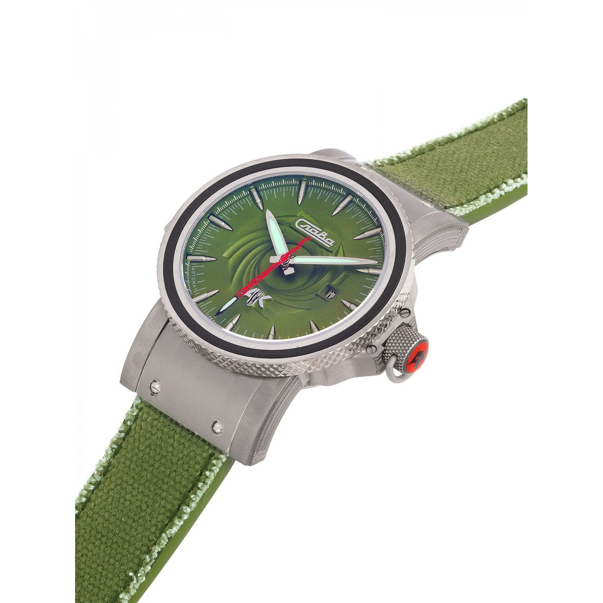 Часы наручные Слава АК; 45 мм; зеленый циферблат; комбинированный ремешок