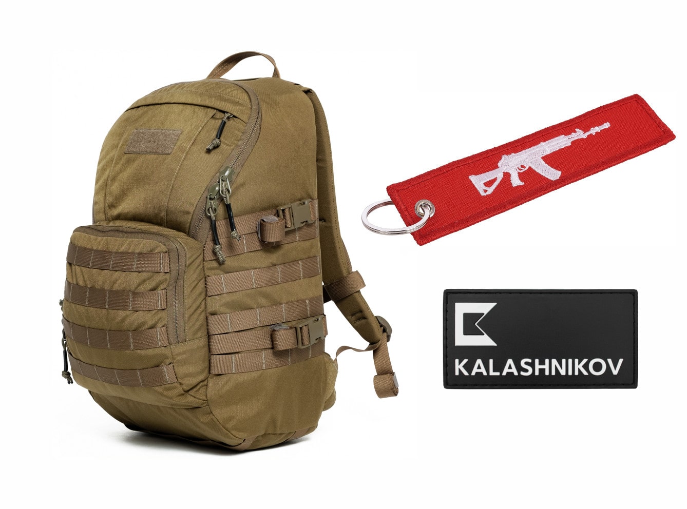 В комплекте брелок-ремувер "АК-12" красный и патч на одежду КК лого чёрно-белый EN