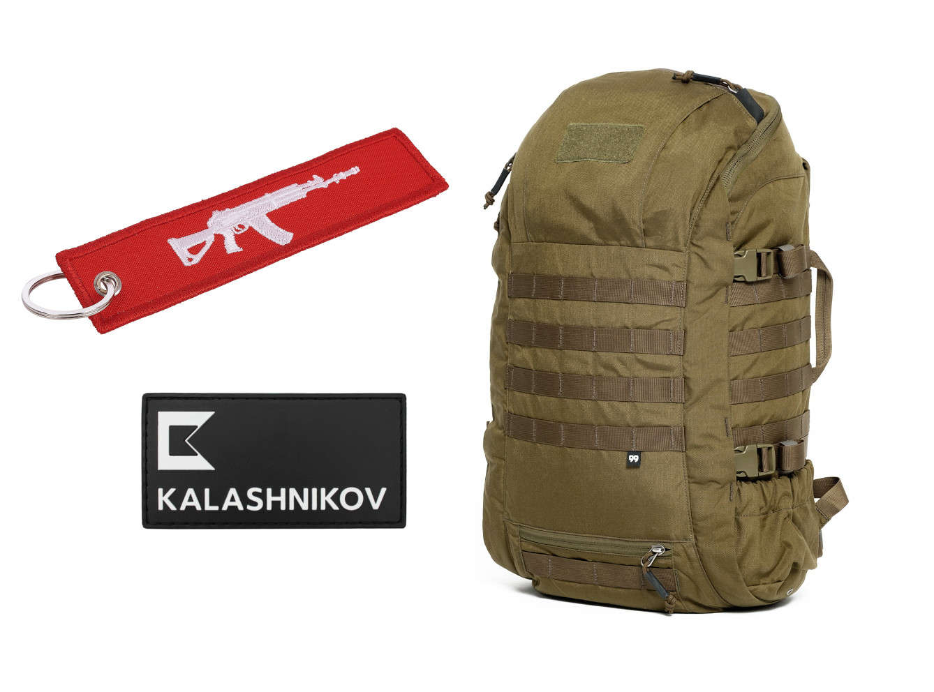 В комплекте брелок-ремувер "АК-12" красный и патч на одежду КК лого чёрно-белый EN