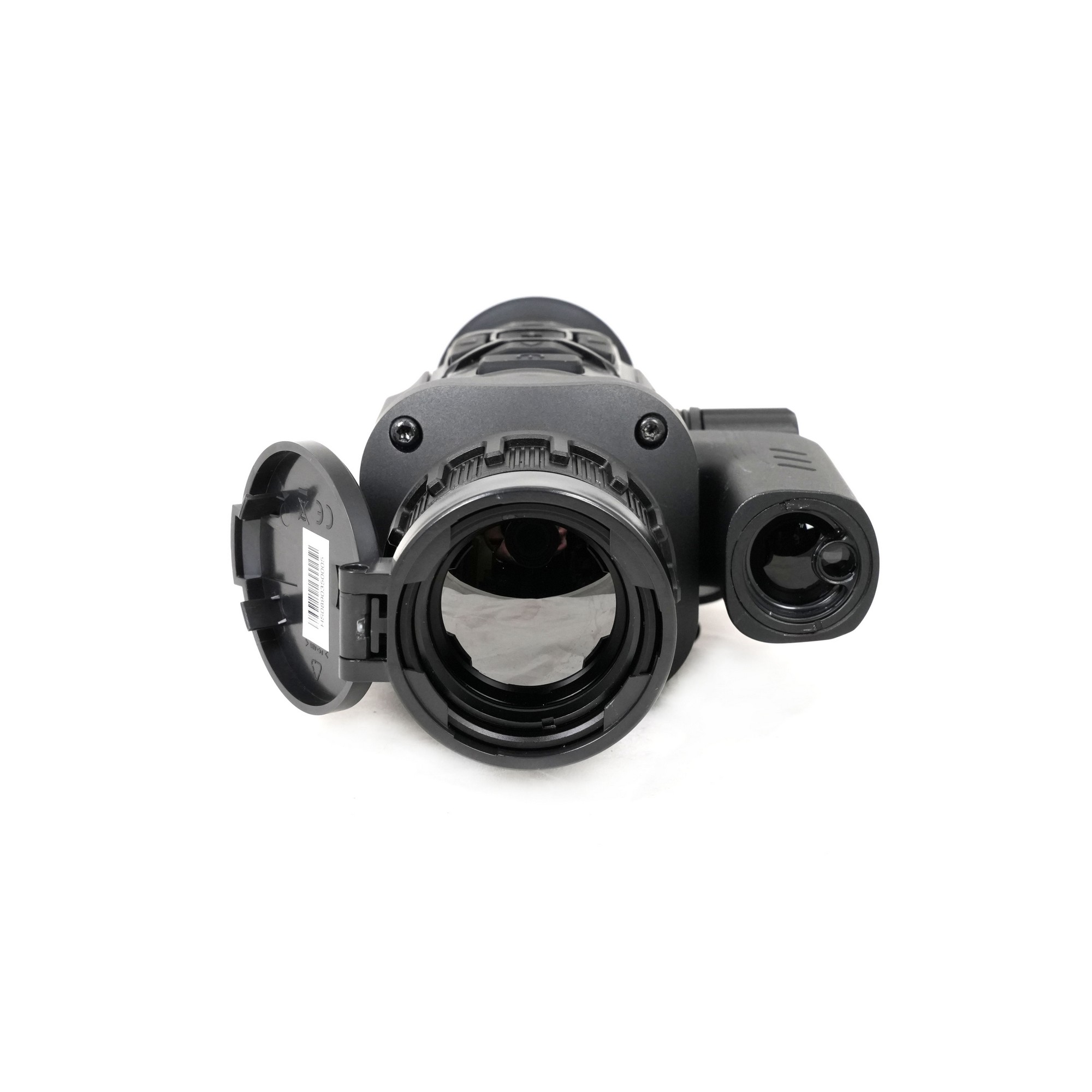 Тепловизионный прицел оснащен лазерным дальномером, способным оперативно измерять расстояния в диапазоне от 10 до 1200 метров. Излучатель и приемник находятся в одном оптическом канале, а само устройство удачно вписано в общий концепт конструкции и не мешает обзору. Дальномер работает на длинах волн 905 нм и отвечает требованиям первого класса лазерной безопасности. Погрешность измерений составляет ±1 м. Доступно 2 режима работы: одиночное измерение и режим непрерывного сканирования.