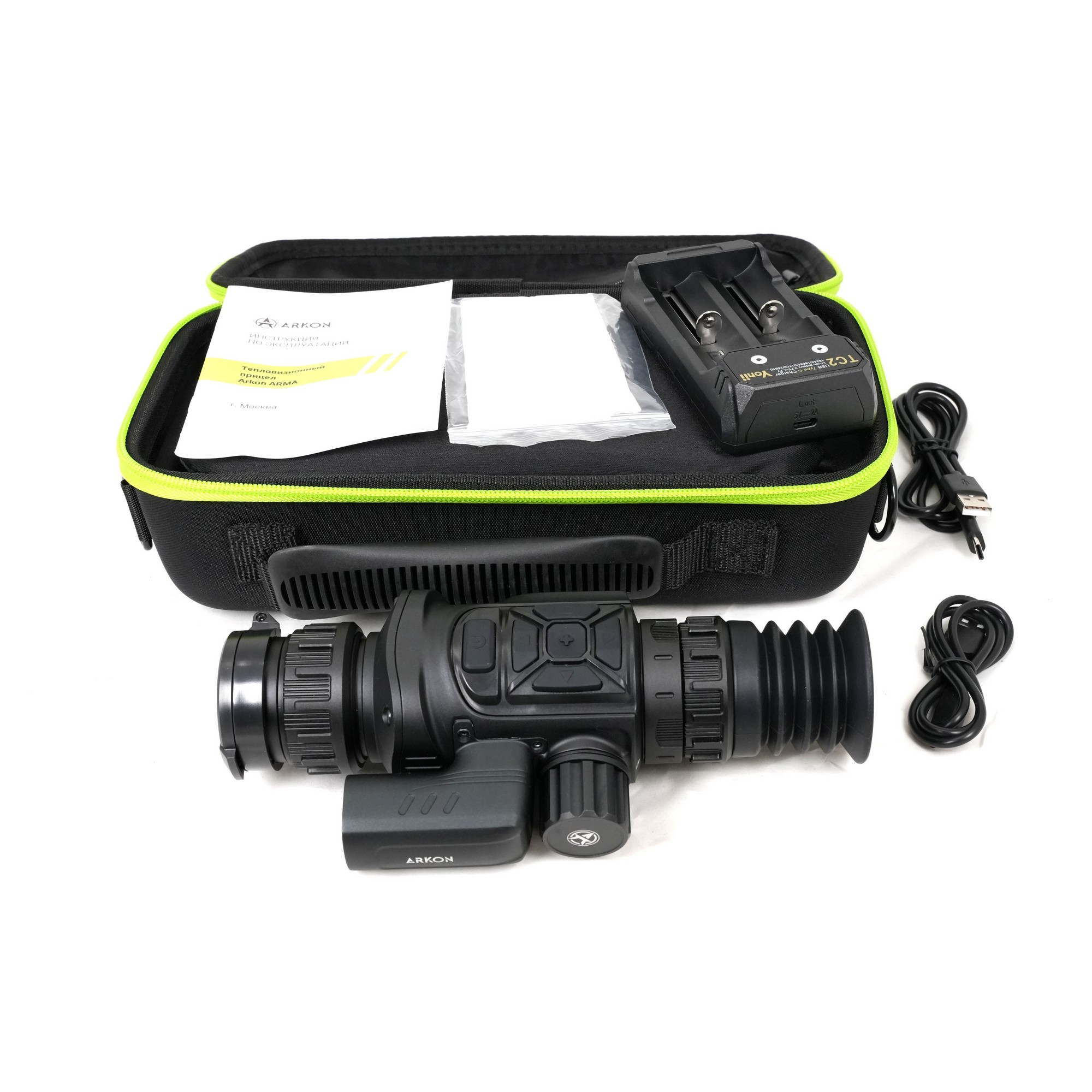 Для продления времени использования предусмотрено подключение к внешнему источнику питания через USB-порт. Новая прошивка значительно расширяет возможности прицела Arkon Arma: встроенный баллистический калькулятор обеспечивает профессиональную точность стрельбы, появились новые прицельные сетки, улучшен интерфейс и упрощена пристрелка. Также добавлена функция записи видео с открытым меню и поддержка сохранения пользовательских настроек. Тепловизионные прицелы Arkon Arma имеют гарантийный срок 2 года с даты покупки в магазине или 3 года с даты производства.