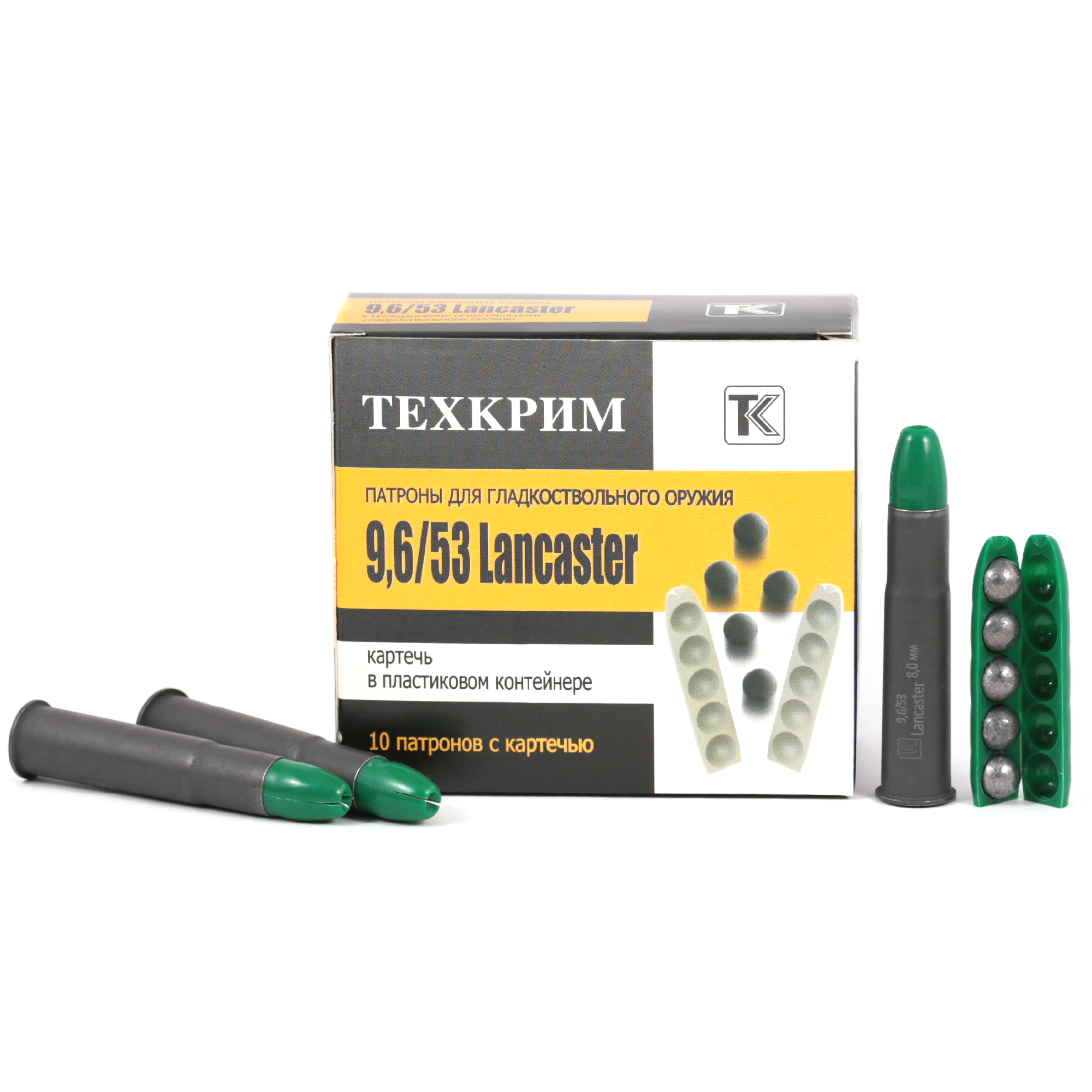АРТ TK9653KAR8_ Патрон Калашников калибр 9,6/53Lancaster, картечь 8,0 мм. Патроны предназначены для охоты на среднего и крупного зверя на дистанции до 150 м и любительской стрельбы.